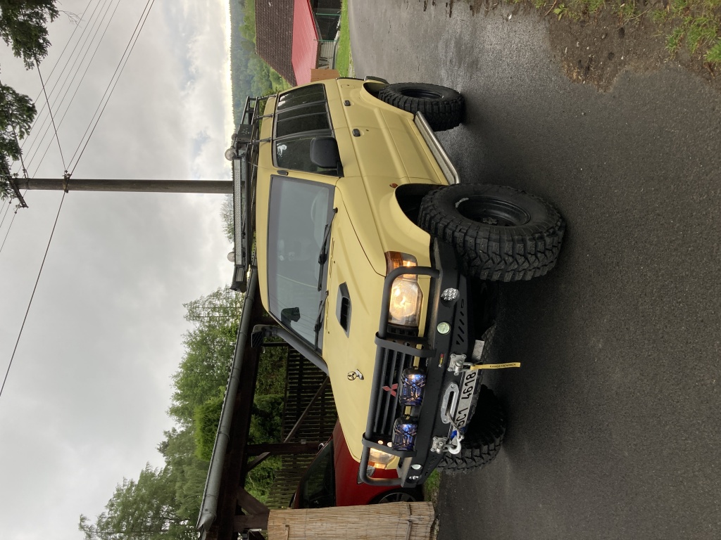 Mitsubishi Pajero, naviják 5,5t, vyprošťovací desky, vyprošťovací úvazek.