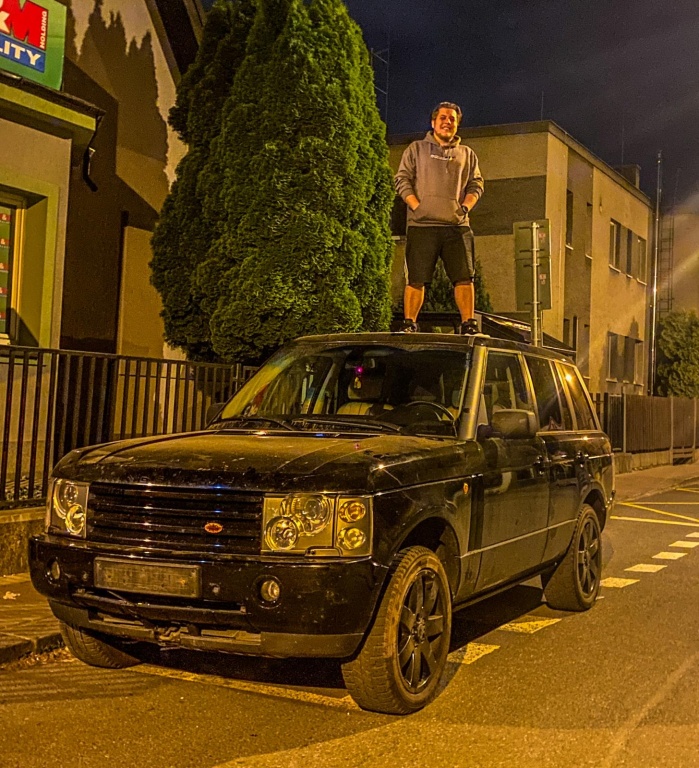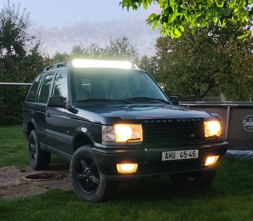 Range Rover-standartní pneu :D , lano, startovací kable, sklopné plato, malý pneuservis