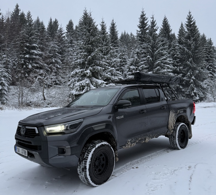 Hilux 2,8D, upravený pro offroad, naviják, kinetické lano, vyprošťovací desky, kompresor, tažné