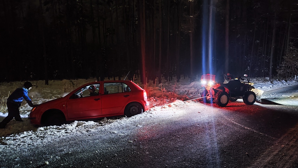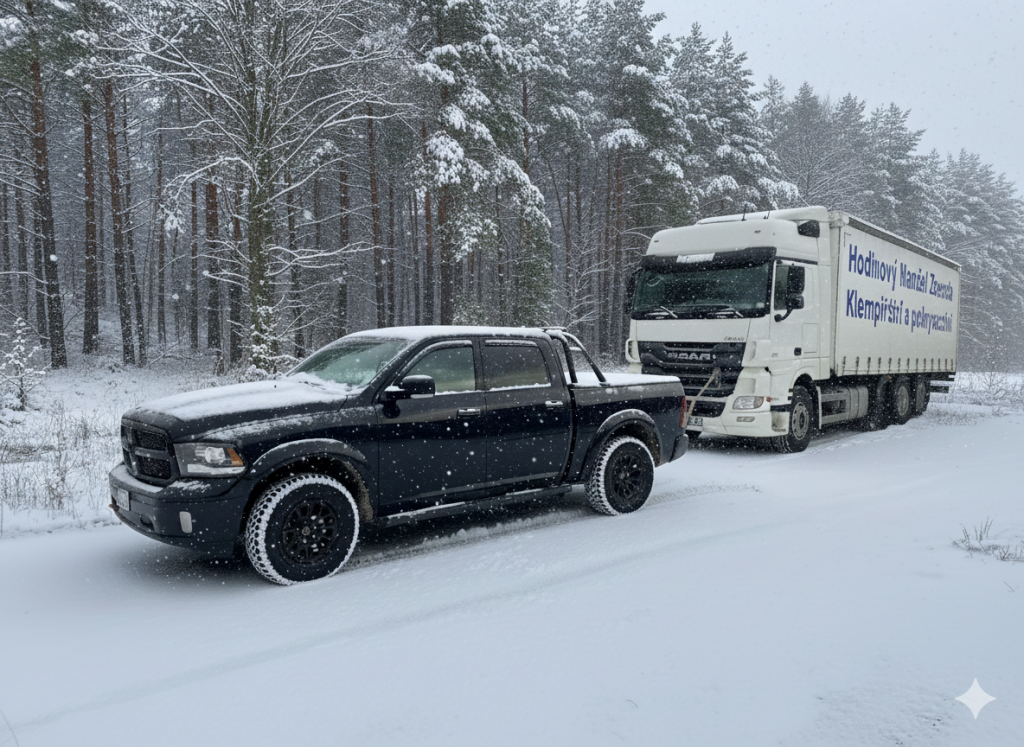 odtahovka Renault Master - naviják, tažné 3000kg, kabely, booster, diagnostika. Čtyřkolka Can-Am Outlander - práce v terénu, naviják.