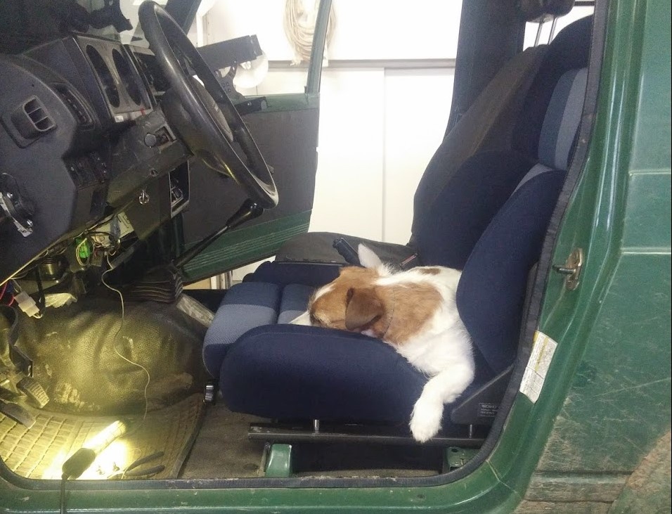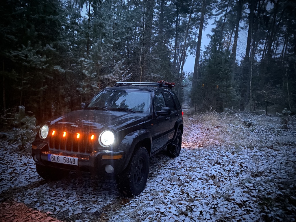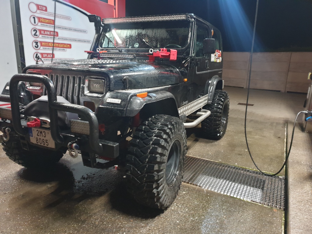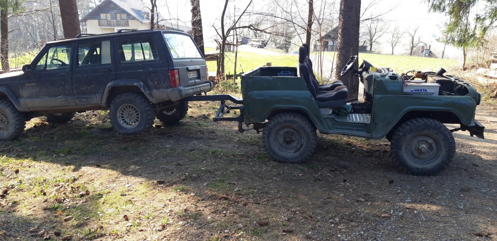 Jeep, lano, nářadí, lopaty, hever, kurty, startovací kabely, atd.....