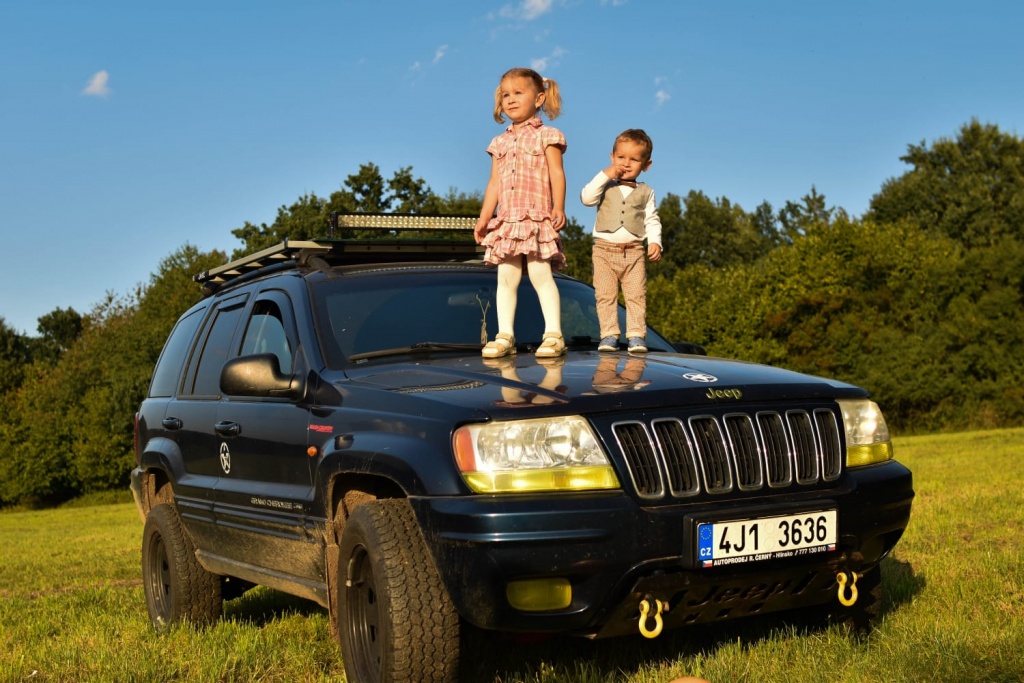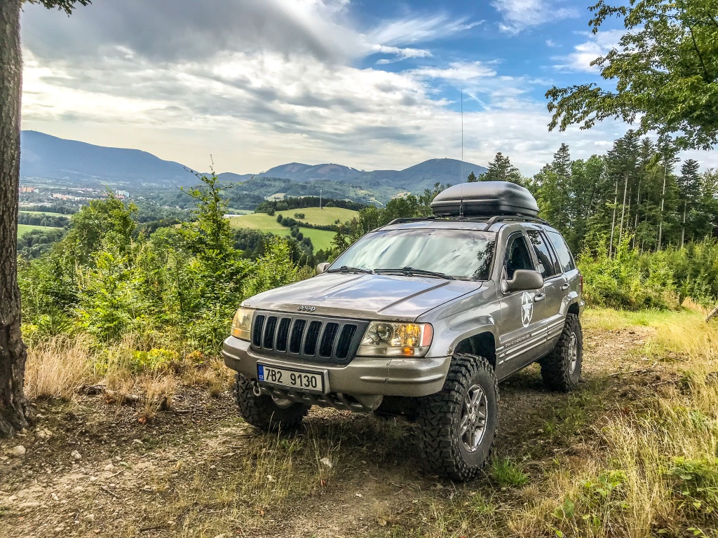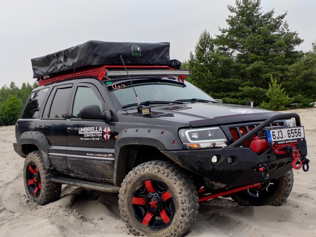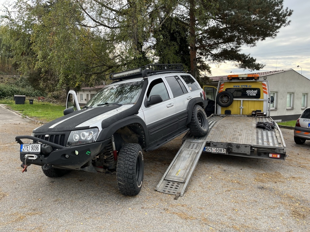 Jeep Grand cherokee s offroad pneu, 15t vyprošťovací popruh, podvalník s navijakem, vybavená dílna