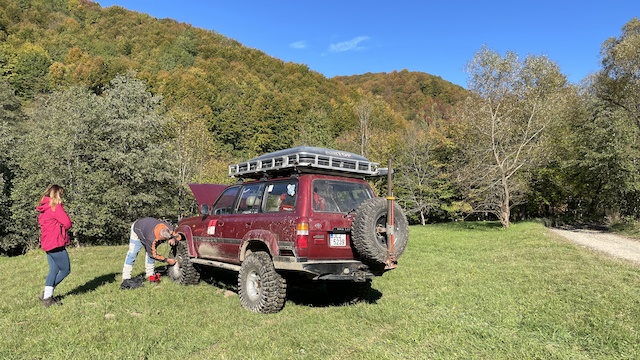 LR Discovery-offroad úpravy, 6t naviják, kladka, navazovací materiál, kinetické lano, vyprošťovací nájezdy, 12V kompresor, startovací kabely, motorová pila, aku nářadí, gola sada a velké kladivo :). Můžu poskytnou i první pomoc (velký batoh se zdravotnickým materiálem)