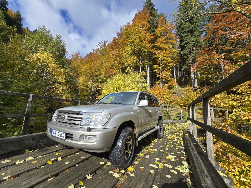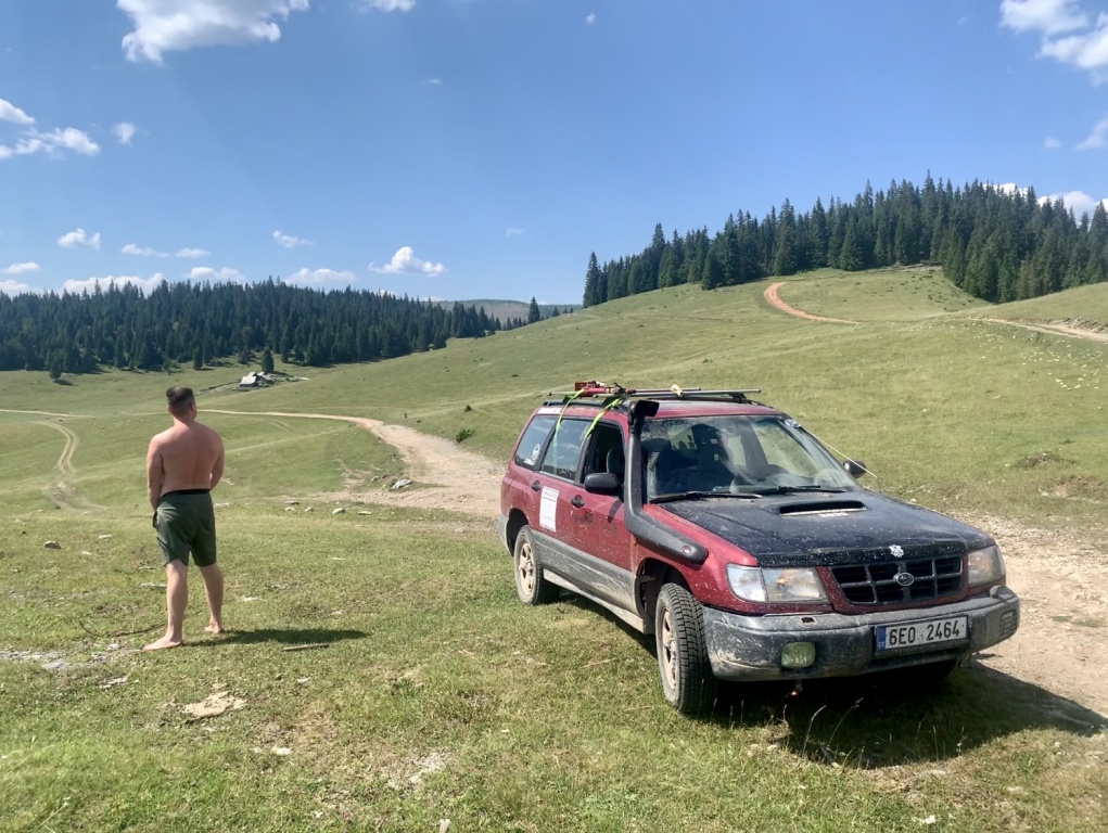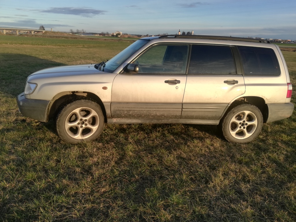 Subaru Forester trochu zvedlej a offroad kola a lana.