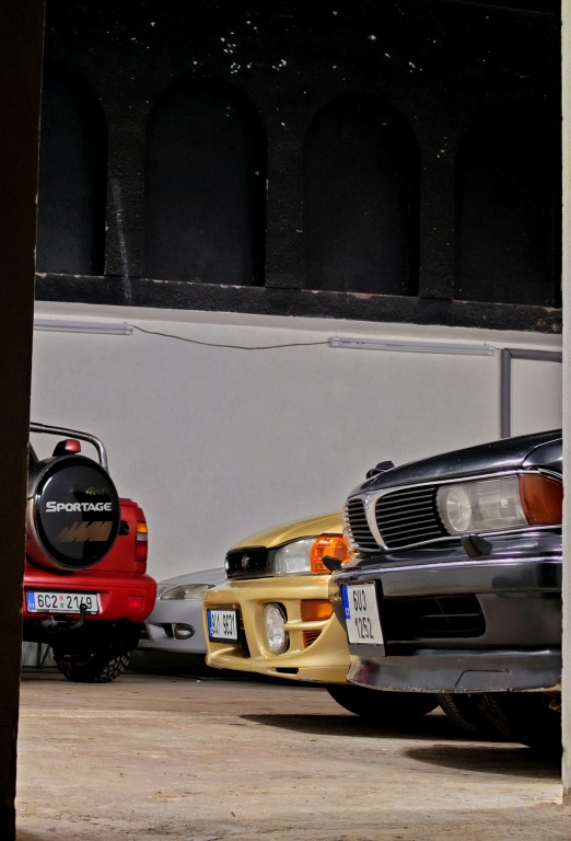Jeep Grand Cherokee, Audi A6 Quattro, kinetika, kurta, naviják, nářadí, lopata, pila, kabely, dílna